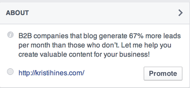 If you have included a website link in your Facebook page's About box, you'll have the option to promote your website link using a Facebook ad.