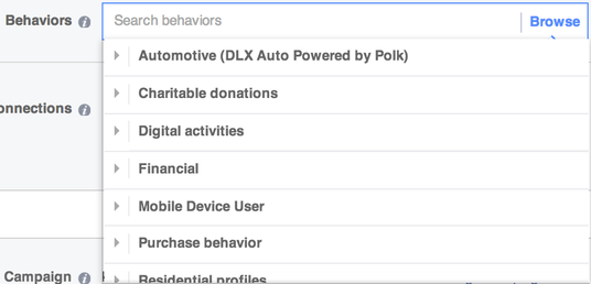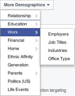 These demographics drill down to a user's relationship status, education level, fields of study, job titles, industry, net worth, home ownership, ethnicity, parental status, political views, and latest life events.